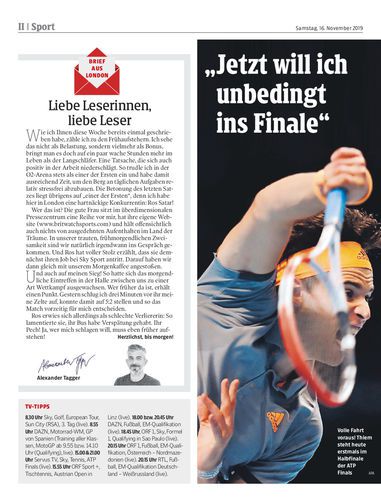 Die Verkühlung ist überstanden, die Energie kehrt zurück – Dominic Thiem fühlt sich „ready“ für den heutigen Auftritt im Halbfinale der ATP Finals. Ab 21 Uhr geht es gegen Alex Zverev.