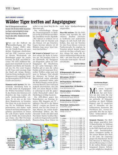 Der EC Bregenzerwald hat heute (19.30 Uhr) HDD Jesenice zu Gast und zeitgleich empfängt Lustenau das Farmteam des KAC. Feldkirch tritt in Fassa an.