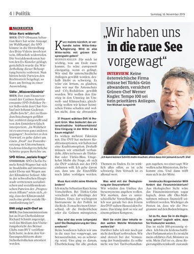 Keine österreichische Firma müsse bei Türkis-Grün abwandern, versichert Grünen-Chef Werner Kogler. Tempo 100 sei kein prioritäres Anliegen. Von Michael Jungwirth