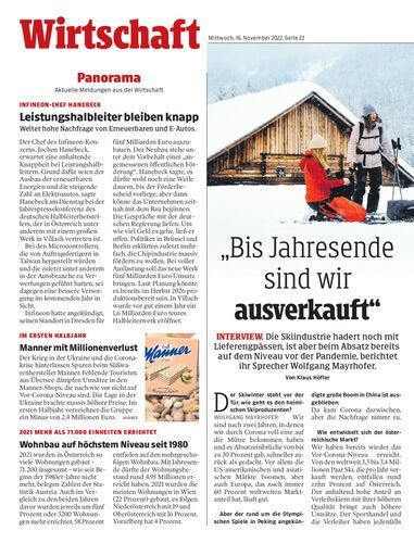 Die Skiindustrie hadert noch mit Lieferengpässen, ist aber beim Absatz bereits auf dem Niveau vor der Pandemie, berichtet ihr Sprecher Wolfgang Mayrhofer. Von Klaus Höfler