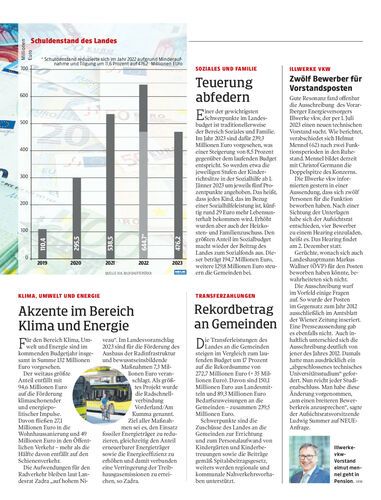 Landesregierung geht mit „Optimismus und Zuversicht“ ins neue Jahr. Trotz des prognostizierten Wirtschaftsabschwungs rechnet man mit weiterhin steigenden Ertragsanteilen.
