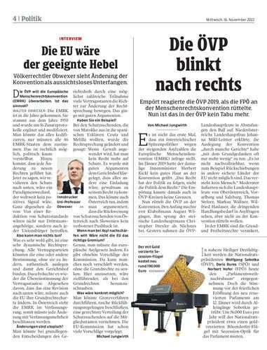 Empört reagierte die ÖVP 2019, als die FPÖ an der Menschenrechtskonvention rüttelte. Nun ist das in der ÖVP kein Tabu mehr.