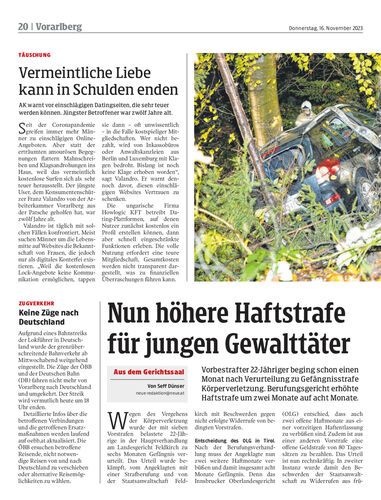 Vorbestrafter 22-Jähriger beging schon einen Monat nach Verurteilung zu Gefängnisstrafe Körperverletzung. Berufungsgericht erhöhte Haftstrafe um zwei Monate auf acht Monate.