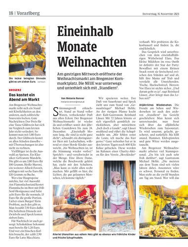Am gestrigen Mittwoch eröffnete der Weihnachtsmarkt am Bregenzer Kornmarktplatz. Die NEUE war unterwegs und unterhielt sich mit „Standlern“.