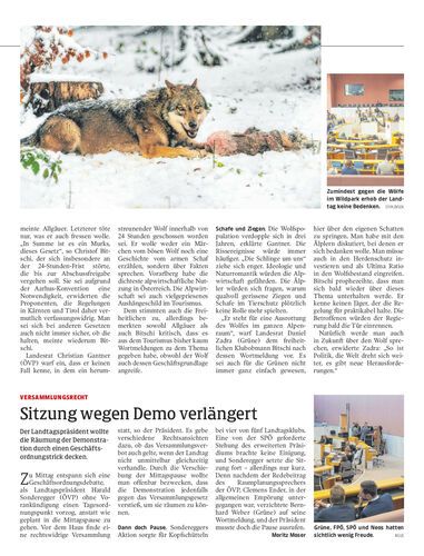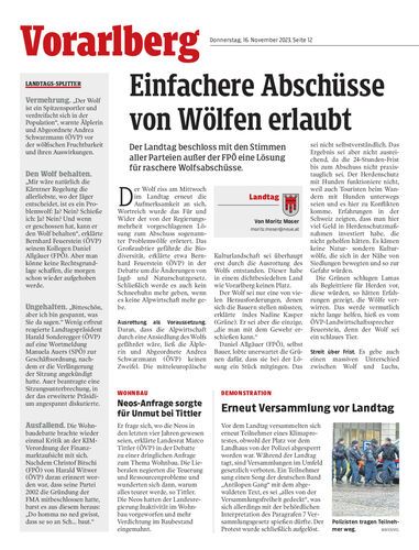 Der Landtag beschloss mit den Stimmen aller Parteien außer der FPÖ eine Lösung für raschere Wolfsabschüsse.