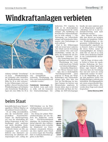 Derzeit liegt ein Verordnungsentwurf auf, der Windkraftanlagen bis zu einer Höhe von 30 Metern grundsätzlich untersagen will. Auch freistehende Solartechnik-Anlagen soll es nicht geben.