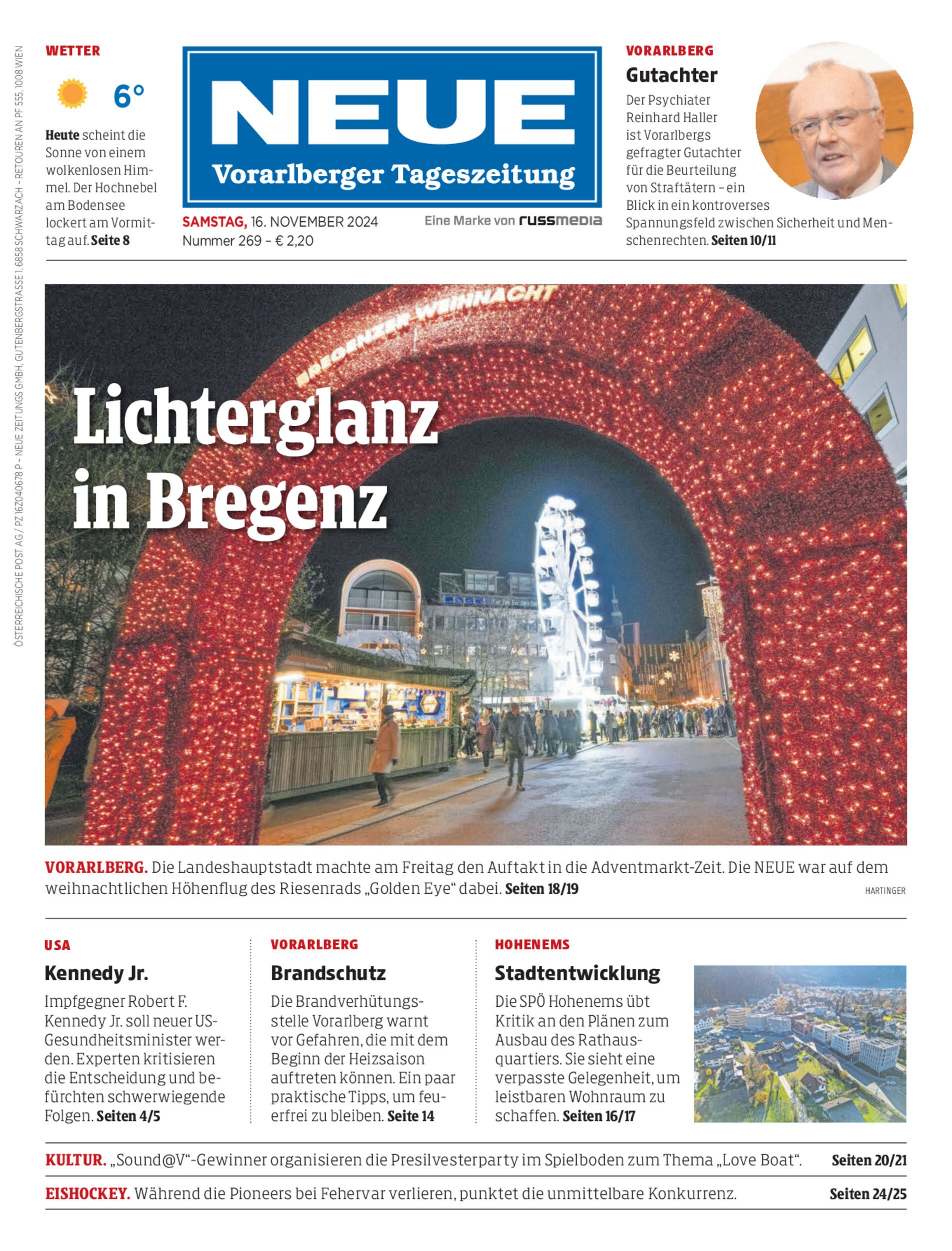 Hoch hinaus geht es seit Freitag auf dem Bregenzer Weihnachtsmarkt, wo das Riesenrad „Golden Eye“ seine Runden dreht.