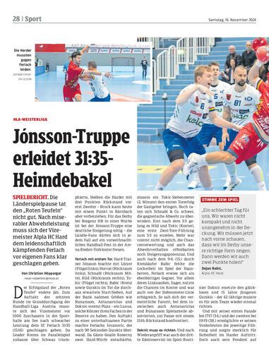 Jónsson-Truppe erleidet 31:35- Heimdebakel