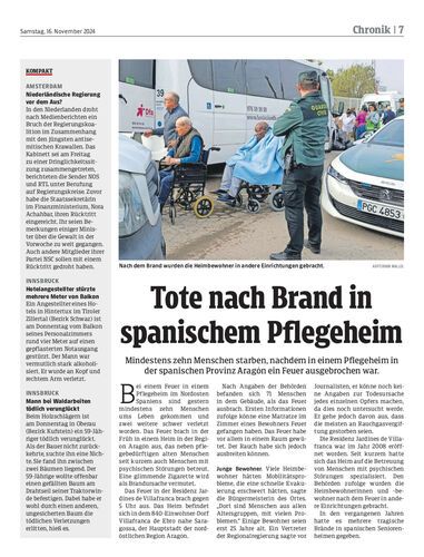 Mindestens zehn Menschen starben, nachdem in einem Pflegeheim in der spanischen Provinz Aragón ein Feuer ausgebrochen war.