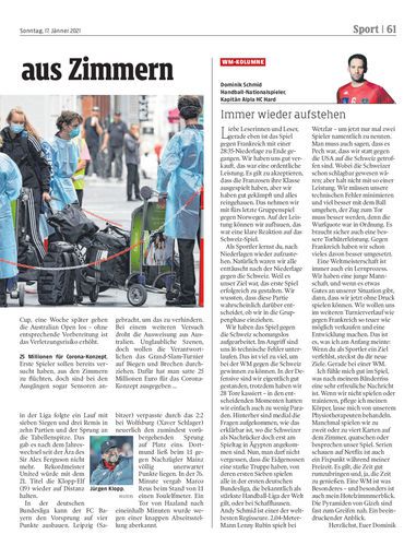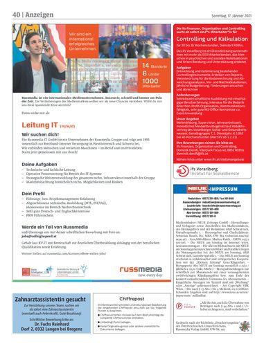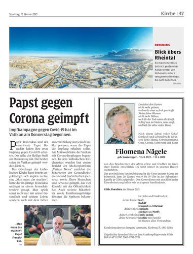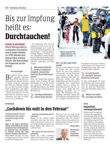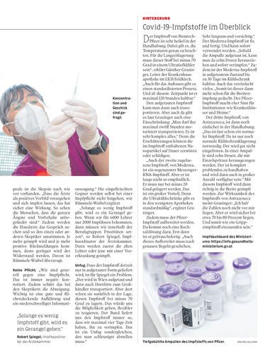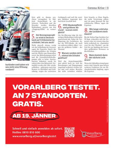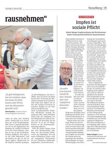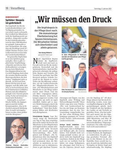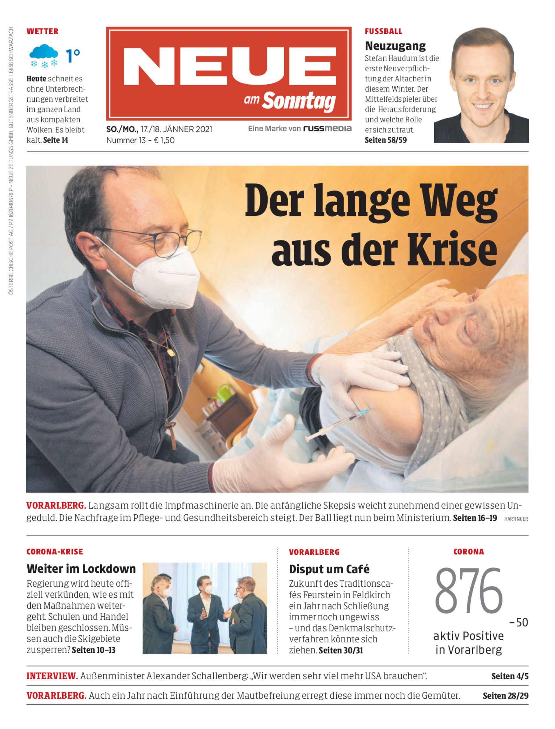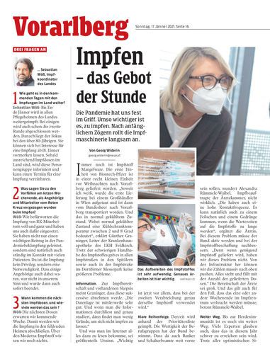 Vorarlberg. Langsam rollt die Impfmaschinerie an. Die anfängliche Skepsis weicht zunehmend einer gewissen Ungeduld. Die Nachfrage im Pflege- und Gesundheitsbereich steigt. Der Ball liegt nun beim Ministerium. Seiten 16–19 Hartinger