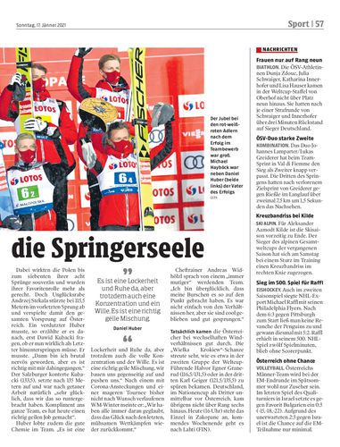 Erstmals in der Geschichte gewannen die ÖSV-Adler ein Teamspringen in Zakopane. Hayböck, Hörl, Aschenwald und Huber überraschten gegen Favoriten aus Polen und Norwegen.
