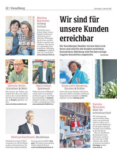 Die Vorarlberger Händler trotzen dem Lockdown und sind für die Kunden erreichbar. Kontaktlose Abholung wird bei den nachgefragten Geschäften angeboten. Lea Kaman