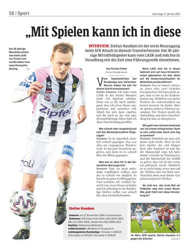 Interview. Stefan Haudum ist der erste Neuzugang beim SCR Altach in diesem Transferfenster. Der 26-jährige Mittelfeldspieler kam vom LASK und möchte in Vorarlberg mit der Zeit eine Führungsrolle einnehmen.