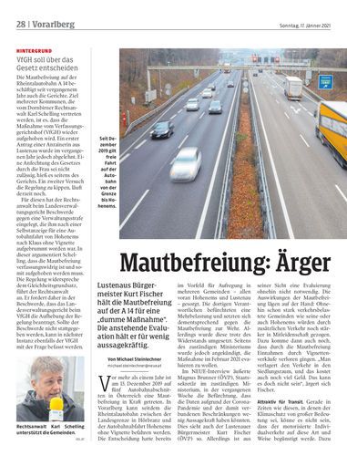 Lustenaus Bürgermeister Kurt Fischer hält die Mautbefreiung auf der A 14 für eine „dumme Maßnahme“. Die anstehende Evaluation hält er für wenig aussagekräftig.