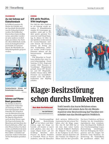 Stellt bereits das kurze Befahren eines Vorplatzes mit einem Auto für ein Wendemanöver eine Besitzstörung dar? Darüber entscheidet nun das Bezirksgericht Feldkirch.