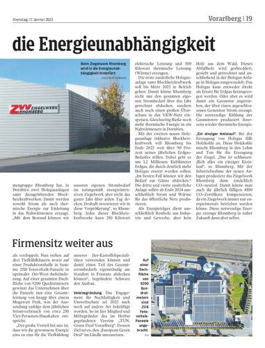 Rund sechs Millionen Euro werden beim Ziegelwerk Rhomberg in Dornbirn in vier zusätzliche Holzgasanlagen investiert.