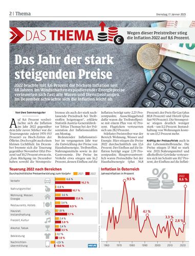 2022 brachte mit 8,6 Prozent die höchste Inflation seit 48 Jahren. Im Windschatten explodierender Energiepreise verteuerten sich fast alle Waren und Dienstleistungen. Im Dezember schwächte sich die Inflation leicht ab.