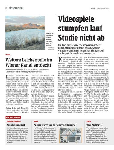 Weitere Leichenteile im Wiener Kanal entdeckt