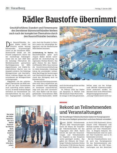 Rädler Baustoffe übernimmt MBA zur Gänze