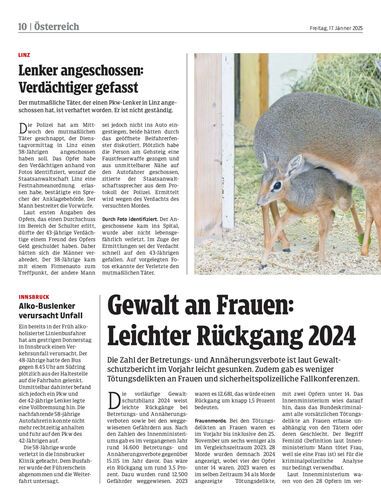 Die Zahl der Betretungs- und Annäherungsverbote ist laut Gewaltschutzbericht im Vorjahr leicht gesunken. Zudem gab es weniger Tötungsdelikten an Frauen und sicherheitspolizeiliche Fallkonferenzen.
