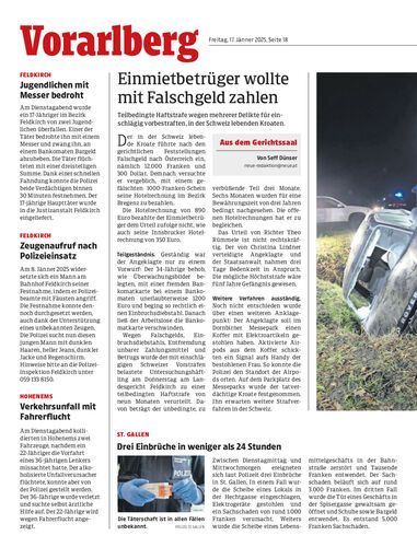 Teilbedingte Haftstrafe wegen mehrerer Delikte für einschlägig vorbestraften, in der Schweiz lebenden Kroaten.