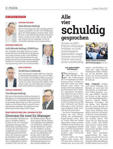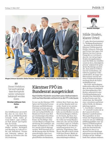 Urteile im BZÖ-Prozess: ehemalige Politiker zu Geld- und bedingten Haftstrafen wegen Untreue verurteilt. Urteile sind noch nicht rechtskräftig.