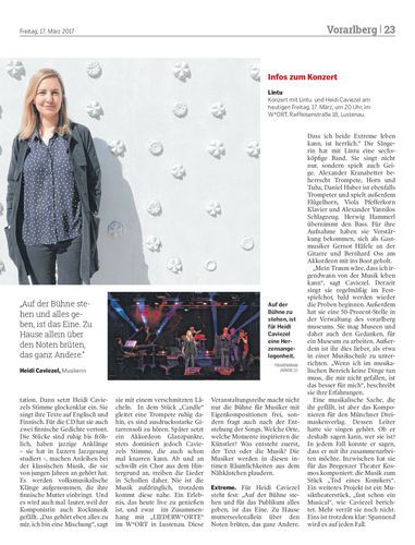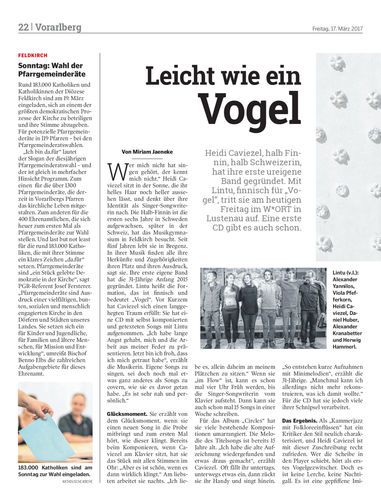 Heidi Caviezel, halb Finnin, halb Schweizerin, hat ihre erste ureigene Band gegründet. Mit Lintu, finnisch für „Vogel“, tritt sie am heutigen Freitag im W*ORT in Lustenau auf. Eine erste CD gibt es auch schon.
