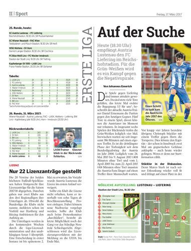 Heute (18.30 Uhr) empfängt Austria Lustenau den FC Liefering im Reichshofstadion. Für die Grün-Weißen wird es ein Kampf gegen die Negativspirale.
