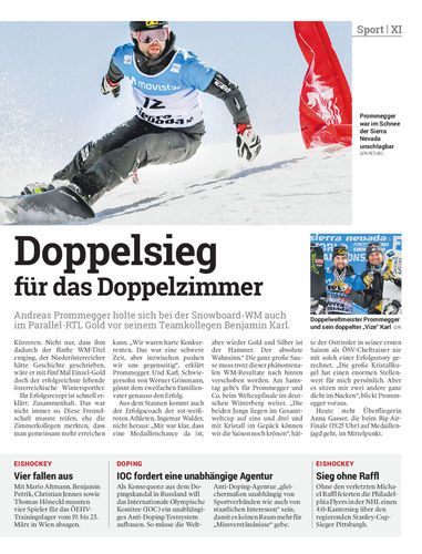 Andreas Prommegger holte sich bei der Snowboard-WM auch im Parallel-RTL Gold vor seinem Teamkollegen Benjamin Karl.