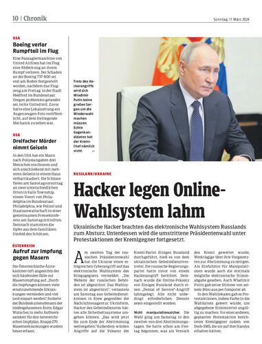 Ukrainische Hacker brachten das elektronische Wahlsystem Russlands zum Absturz. Unterdessen wird die umstrittene Präsidentenwahl unter Protestaktionen der Kremlgegner fortgesetzt.