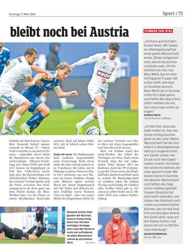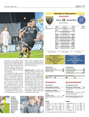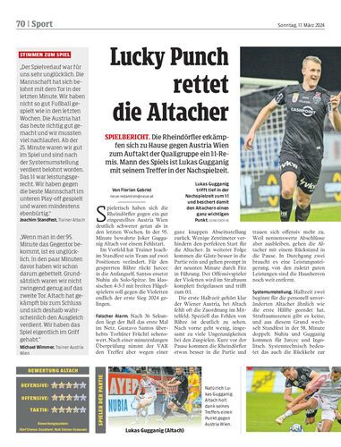 Spielbericht. Die Rheindörfler erkämpfen sich zu Hause gegen Austria Wien zum Auftakt der Qualigruppe ein 1:1-Remis. Mann des Spiels ist Lukas Gugganig mit seinem Treffer in der Nachspielzeit.