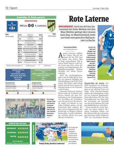 Spielbericht. Auch im dritten Saisonduell der Grün-Weißen mit den Blau-Weißen gelingt den Linzern kein Sieg. In Oberösterreich steht am Ende eine gerechte Nullnummer zu Buche.