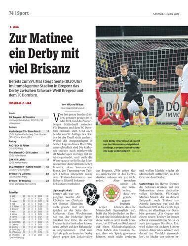 Bereits zum 97. Mal steigt heute (10.30 Uhr) im immoAgentur-Stadion in Bregenz das Derby zwischen Schwarz-Weiß Bregenz und dem FC Dornbirn.