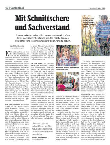 In einem Garten in Dornbirn versammelten sich kürzlich einige Gartenliebhaber, um den Feinheiten des Sträucher- und Rosenschnitts auf den Grund zu gehen.