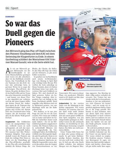 Am Mittwoch ging das Play-off-Duell zwischen den Pioneers Vorarlberg und dem KAC mit dem Seriensieg der Klagenfurter zu Ende. In einem Gastbeitrag schildert der Montafoner KAC-Stürmer Manuel Ganahl, wie er die Serie erlebt hat.