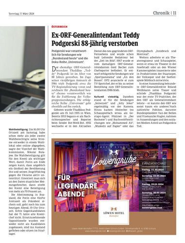 Ex-ORF-Generalintendant Teddy Podgorski 88-jährig verstorben