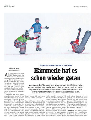 Interview. Alessandro Hämmerle hat zum vierten Mal nach 2015, 2019 und 2021 sein Heimrennen im Montafon gewonnen. Im Sport-Talk spricht der 30-Jährige über das Rennen, seine Emotionen und darüber, was nach dem Viertelfinale geändert wurde. „Izzi“ offenbart auch, dass er den Heimsieg dieses Mal etwas mehr feiern will als seine ersten drei Heimerfolge.