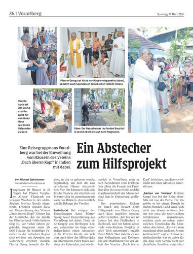 Eine Reisegruppe aus Vorarlberg war bei der Einweihung von Häusern des Vereins „Dach überm Kopf“ in Indien mit dabei.