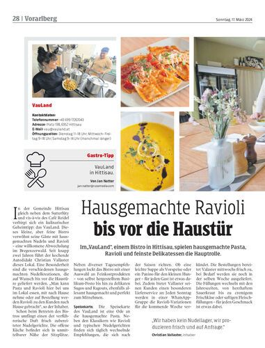Im„VauLand“, einem Bistro in Hittisau, spielen hausgemachte Pasta, Ravioli und feinste Delikatessen die Hauptrolle.