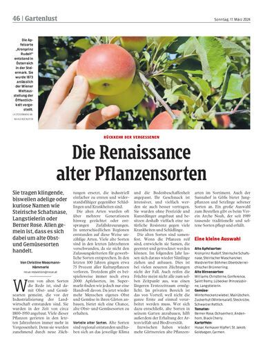 Sie tragen klingende, bisweilen adelige oder kuriose Namen wie Steirische Schafsnase, Langstielerin oder Berner Rose. Allen gemein ist, dass es sich dabei um alte Obst- und Gemüsesorten handelt.