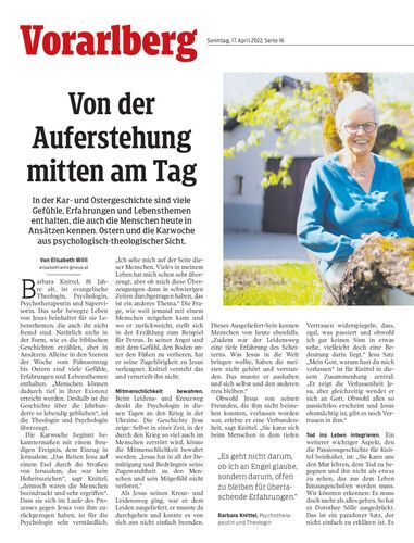 In der Kar- und Ostergeschichte sind viele Gefühle, Erfahrungen und Lebensthemen enthalten, die auch die Menschen heute in Ansätzen kennen. Ostern und die Karwoche aus psychologisch-theologischer Sicht.
