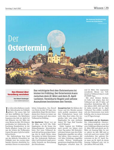 Das wichtigste Fest des Christentums ist immer im Frühling. Der Ostertermin kann zwischen dem 22. März und dem 25. April variieren. Vereinbarte Regeln und seltene Ausnahmen bestimmen den Termin.