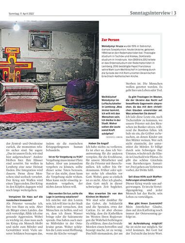 Interview. Die Ukraine durchlebe einen langen Karfreitag, sagt Wolodymyr Hruza. Hier erklärt der griechisch-katholische Weihbischof von Lemberg, warum er allen Zweifeln zum Trotz fest an Ostern und die Auferstehung glaubt. Von Stefan Winkler