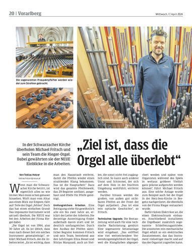 In der Schwarzacher Kirche überholen Michael Fritsch und sein Team die Rieger-Orgel. Dabei gewährten sie der NEUE Einblicke in die Arbeiten.