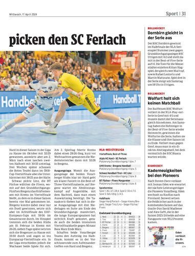 Der Alpla HC Hard hat sich als HLA-Grunddurchgangssieger für den SC Ferlach als Viertelfinalgegner entschieden. Bregenz bleibt als Fünfter das Duell mit den viertplatzierten Kremsern. Im Halbfinale ist das Vorarlberger Derby möglich.