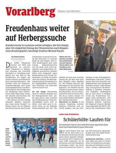 Standortsuche in Lustenau weiter erfolglos, die Zeit drängt aber. Ein möglicher Umzug des Theaterzeltes nach Bregenz wird aktuell geprüft, bestätigt Stadtrat Michael Rauth.