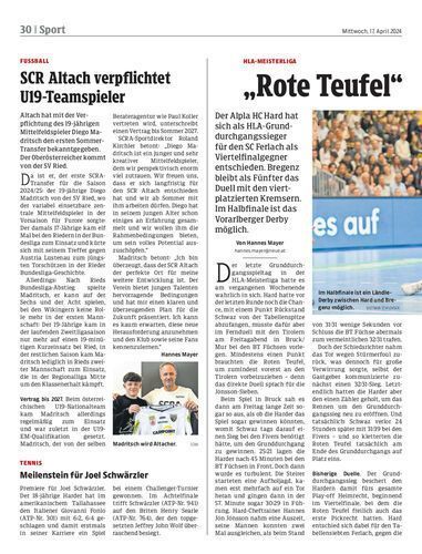 Altach hat mit der Verpflichtung des 19-jährigen Mittelfeldspieler Diego Madritsch den ersten Sommer-Transfer bekanntgegeben. Der Oberösterreicher kommt von der SV Ried.
