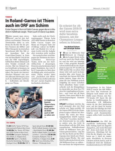 Erster Gegner in Rom ist Pablo Cuevas, gegen den er in Madrid im Halbfinale siegte. Thiem auch im Davis Cup dabei.