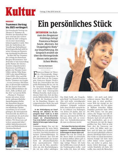 Interview. Im Rahmen des Bregenzer Frühlings bringt Francesca Harper heute „Mystory: An Unapologetic Body“ zur Uraufführung. Im Gespräch erzählt sie über die Hintergründe dieses sehr persönlichen Werks.