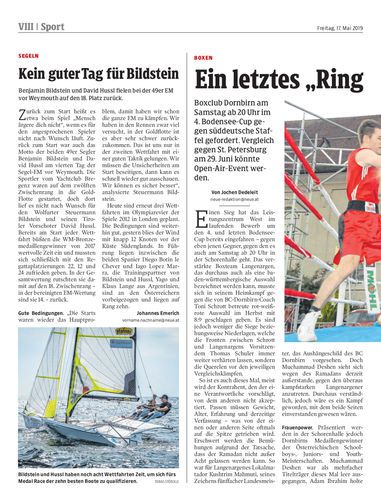 Boxclub Dornbirn am Samstag ab 20 Uhr im 4. Bodensee-Cup gegen süddeutsche Staffel gefordert. Vergleich gegen St. Petersburg am 29. Juni könnte Open-Air-Event werden.
